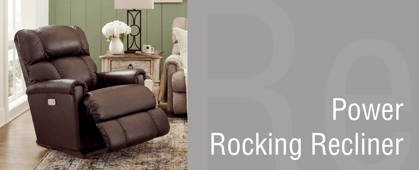 A Power Rocking Recliner with Adjustable Headrest and Lumbar support offers motorized reclining and soothing comfort with customizable support.